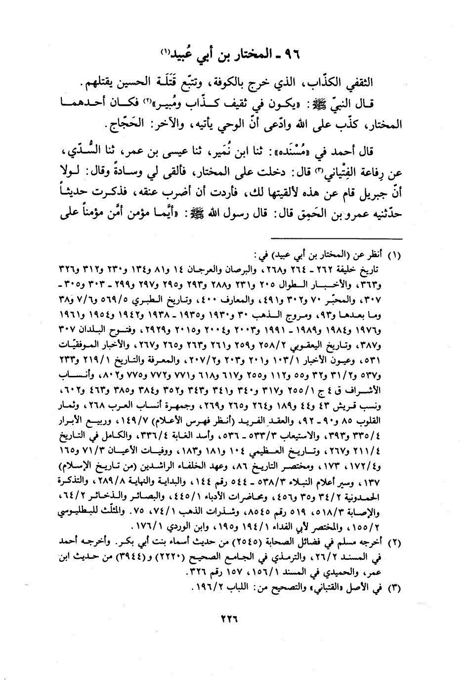 96- الْمُخْتَارُ بْنُ أَبِي عُبَيْدٍ [1] الثَّقَفِيُّ الكّذَّابُ، الَّذِي خَرَجَ بِالْكُوفَةِ، وَتَتَبَّعَ قَتَلَةَ الْحُسَيْنِ يقتلهم.
