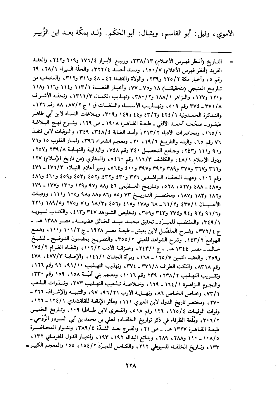 [ () ] التاريخ (انظر فهرس الأعلام) 13/ 338، وربيع الأبرار 4/ 176 و 209 و 242، والعقد الفريد (انظر فهرس الأعلام) 7/ 150، ومسند أحمد 4/ 322، والحلّة السيراء 1/ 28، 29 رقم 5، وأخبار مكة 2/ 225 و 239، والولاة والقضاة 42- 48 و 311 و 312، والمنتخب من تاريخ المنبجي (بتحقيقنا) 68 و 75- 77، وأخبار القضاة 1/ 113 و 114 و 116 و 118 و 120 و 127، والزاهر 1/ 188 و 2/ 380، وتهذيب الكمال 3/ 1316، وتحفة الأشراف 8/ 371- 374 رقم 509، وتهذيب الأسماء واللغات ق 1 ج 2/ 87، 88 رقم 126، والتذكرة الحمدونية 1/ 424 و 2/ 43 و 44 و 149 و 309، وبلاغات النساء لابن أبي طاهر طيفور- صحّحه أحمد الألفي- طبعة القاهرة 1908- ص 129، وشرح نهج البلاغة 6/ 165، ومحاضرات الأدباء 2/ 213، وأسد الغابة 4/ 348، 349، والوفيات لابن قنفذ 76 رقم 65، والبدء والتاريخ 6/ 19، 20، ومعجم الشعراء 396، وثمار القلوب 15 و 76 و 90 و 111 و 243، وجامع التحصيل 340 رقم 748، والبداية والنهاية 8/ 239 و 257، ودول الإسلام 1/ 48، والكاشف 3/ 116 رقم 5460، والمغازي (من تاريخ الإسلام) 127 و 366 و 367 و 375 و 389 و 392 و 397 و 400 و 564، وسير أعلام النبلاء 3/ 476- 479 رقم 102، وعهد الخلفاء الراشدين 326 و 430 و 432 و 452 و 453 و 459 و 460 و 481 و 485- 488 و 527 و 528، وتاريخ العظيمي 46 و 88 و 97 و 129 و 130 و 177- 179 و 182 و 183 و 187، ومختصر التاريخ 73 و 85 و 86 و 88 و 98 و 105 و 111، ووفيات الأعيان 1/ 437 و 2/ 66- 68 و 178 و 415 و 456 و 3/ 18 و 71 و 275 و 5/ 189 و 221 و 6/ 91 و 92 و 94 و 374 و 343 و 359، وتخليص الشواهد 347 و 413، والكتاب لسيبويه 1/ 349، والمقتضب للمبرّد- تحقيق محمد عبد الخالق عضيمة- مصر 1388 هـ. - ج 4/ 372، وشرح المفصّل لابن يعيش- طبعة مصر 1928- ج 2/ 101 و 110، وهمع الهوامع 2/ 143، وشرح الشواهد للعيني 2/ 355، والتصريح بمضمون التوضيح- للشيخ خالد- مصر 1344 هـ. - ج 1/ 243، وخزانة الأدب 2/ 102، وشفاء الغرام 2/ 174 و 259، والعقد الثمين 7/ 165- 168، ومرآة الجنان 1/ 141، والإصابة 3/ 477، 478 رقم 8318، والنكت الظراف 8/ 371- 374، وتهذيب التهذيب 10/ 91، 92 رقم 166، وتقريب التهذيب 2/ 238، 239 رقم 1016، ومعجم بني أميّة 158، 159 رقم 330، والنجوم الزاهرة 1/ 164- 169، وخلاصة تذهيب التهذيب 373، وشذرات الذهب 1/ 73، وخاص الخاص 86، ونهاية الأرب 21/ 96، 97، والتنبيه والإشراف 266- 270، ومختصر تاريخ الدول لابن العبري 111، ومآثر الإنافة للقلقشندي 1/ 124- 126، وفوات الوفيات 4/ 125، 126 رقم 518، والفخري لابن طباطبا 109، وتاريخ الخميس 2/ 306، وبلغة الظرفاء في ذكر تواريخ الخلفاء، لعلي بن محمد بن أبي السرور الرّوحي- طبعة القاهرة 1327 هـ. - ص 21، والفرج بعد الشدّة 4/ 389، ونشوار المحاضرة 5/ 108- 110 و 288، 289، وبدائع البدائه 192، 193، وأخبار الدول للقرماني 132، 133، وتاريخ الخلفاء للسيوطي 212، والكامل للمبرّد 2/ 154، 155 والمعجم الكبير