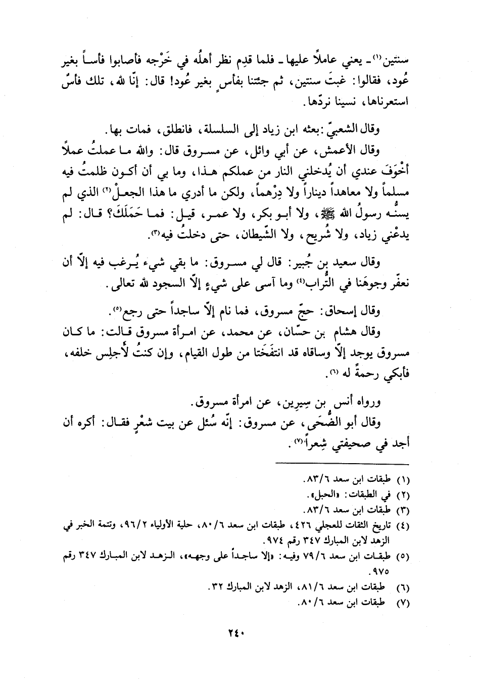 [6] طبقات ابن سعد 6/ 81، الزهد لابن المبارك 32.