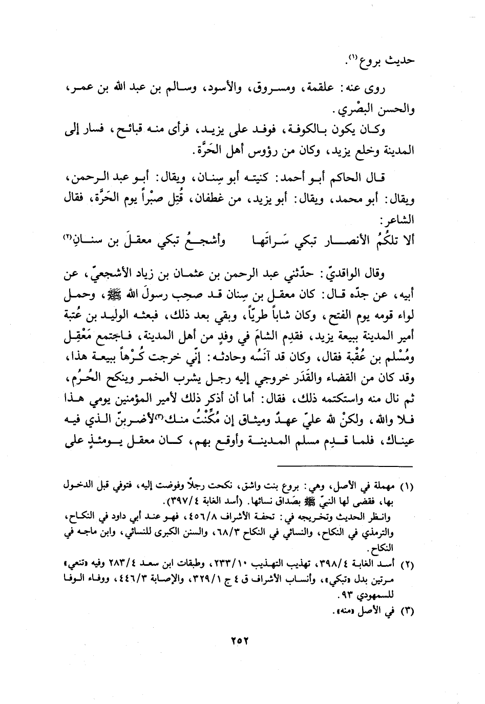 [2] أسد الغابة 4/ 398، تهذيب التهذيب 10/ 233، وطبقات ابن سعد 4/ 283 وفيه «تنعي» مرتين بدل «تبكي» ، وأنساب الأشراف ق 4 ج 1/ 329، والإصابة 3/ 446، ووفاء ألوفا للسمهودي 93.