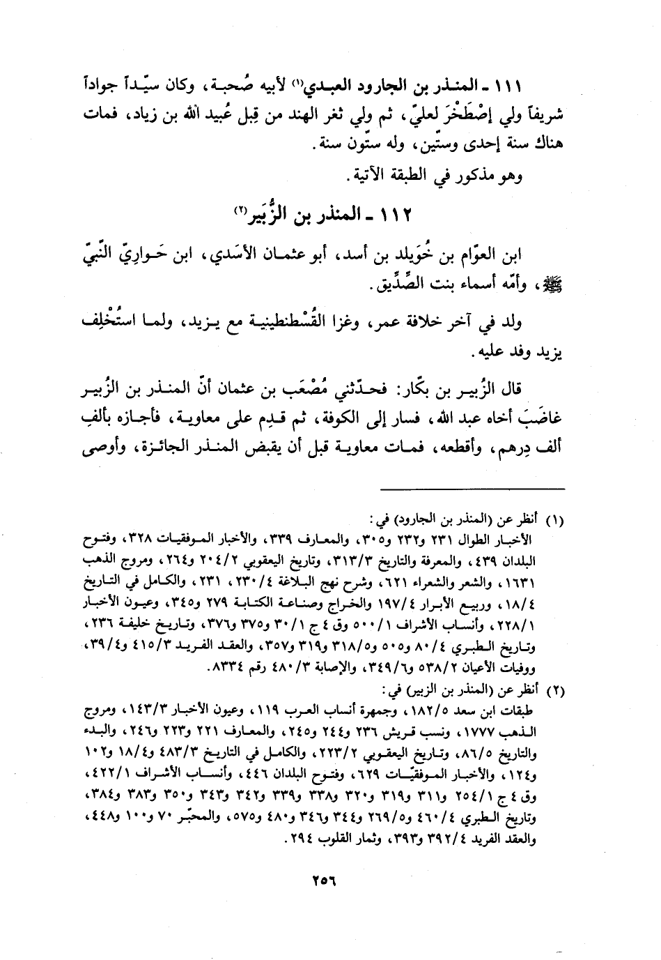 111- الْمُنْذِرُ بْنُ الْجَارُودِ الْعَبْدِيُّ [1] لِأَبِيهِ صُحْبَةٌ، وَكَانَ سَيِّدًا جَوَّادًا شَرِيفًا وَلِيَ إِصْطَخْرَ لِعَلِيٍّ، ثُمَّ وَلِيَ ثَغْرَ الْهِنْدِ مِنْ قِبَلِ عُبَيْدِ اللَّهِ بْنِ زِيَادٍ، فَمَاتَ هُنَاكَ سَنَةَ إِحْدَى وَسِتِّينَ، وَلَهُ سِتُّونَ سَنَةٌ.