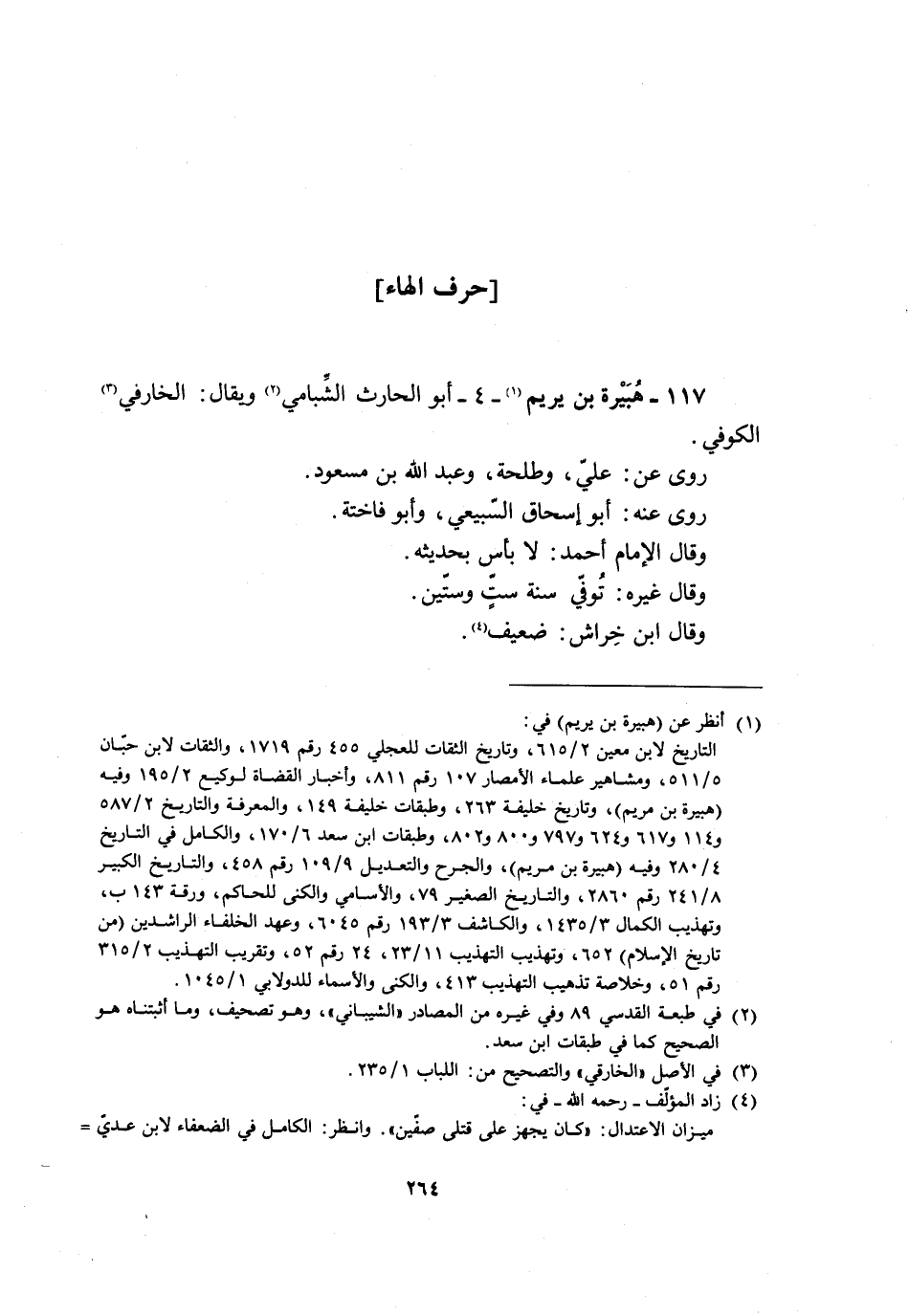 117- هُبَيْرَةُ بْنُ يَرِيمَ [1]- 4- أَبُو الْحَارِثِ الشِّبَامِيُّ [2] وَيُقَالُ: الْخَارِفِيُّ [3] الْكُوفِيُّ.