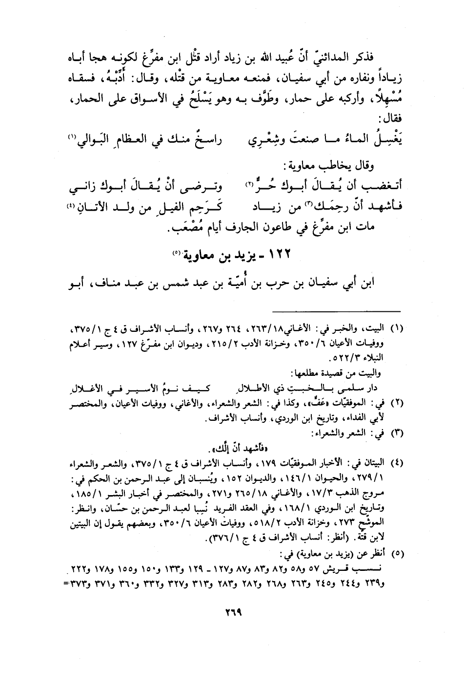 [2] في: الموفقيّات «عفّ» ، وكذا في: الشعر والشعراء، والأغاني، ووفيات الأعيان، والمختصر لأبي الفداء، وتاريخ ابن الوردي، وأنساب الأشراف.