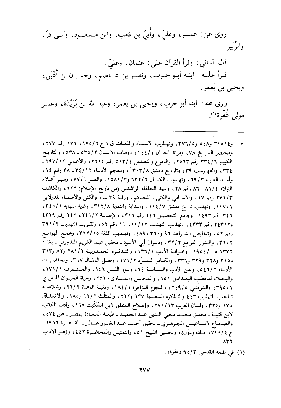 [ () ] و 4/ 305 و 548 و 5/ 376، وتهذيب الأسماء واللغات ق 1 ج 2/ 175، 176 رقم 277، ومختصر التاريخ 78، ومرآة الجنان 1/ 144، ووفيات الأعيان 2/ 535- 538، والتاريخ الكبير 6/ 334 رقم 2563، والجرح والتعديل 4/ 503 رقم 2214، والأغاني 12/ 297- 334، والفهرست 39، وتاريخ دمشق 8/ 303 أ، ومعجم الأدباء 12/ 34- 38 رقم 14، وأسد الغابة 3/ 69، وتهذيب الكمال 2/ 632 و 3/ 1580، والعبر 1/ 77، وسير أعلام النبلاء 4/ 81- 86 رقم 28، وعهد الخلفاء الراشدين (من تاريخ الإسلام) 622، والكاشف 3/ 271 رقم 17، والأسامي والكنى، للحاكم، ورقة 39 ب، والكنى والأسماء للدولابي 1/ 107، وتهذيب تاريخ دمشق 7/ 104، والبداية والنهاية 8/ 312، وغاية النهاية 1/ 345، 346 رقم 1493، وجامع التحصيل 246 رقم 316، والإصابة 2/ 241، 242 رقم 4329 و 2/ 243 رقم 4333، وتهذيب التهذيب 12/ 10، 11 رقم 52، وتقريب التهذيب 2/ 391 رقم 52، وتخليص الشواهد 92 و 360 و 489، وتهذيب اللغة 15/ 362، وهمع الهوامع 2/ 32، والدرر اللوامع 2/ 32، وديوان أبي الأسود- تحقيق عبد الكريم الدجيلي- بغداد 1372 هـ. / 1954، وخزانة الأدب 1/ 136، والتذكرة الحمدونية 2/ 281 و 82 و 313 و 315 و 328 و 329 و 336، والكامل للمبرّد 2/ 171، وفصل المقال 367، ومحاضرات الأدباء 2/ 546، وعين الأدب والسياسة 64، ونور القبس 146، والمستطرف 1/ 171، والبخلاء للخطيب البغدادي 151، والمحاسن والمساوئ 252، وحياة الحيوان للدميري 1/ 395، والشريشي 5/ 249، والنجوم الزاهرة 1/ 184، وبغية الوعاة 2/ 22، وخلاصة تذهيب التهذيب 443 والتذكرة السعدية 137 و 222، والمثلّث 2/ 12 و 285، والاشتقاق 175 و 325، ولسان العرب 13/ 270، وإصلاح المنطق لابن السّكّيت 165، وأدب الكاتب لابن قتيبة- تحقيق محمد محيي الدين عبد الحميد- طبعة السعادة بمصر- ص 474، والصحاح لإسماعيل الجوهري- تحقيق أحمد عبد الغفور عطار- القاهرة 1956- ج 4/ 1700 مادة (دول) ، وتحسين القبيح 51، والتمثيل والمحاضرة 442، وزهر الآداب 832.