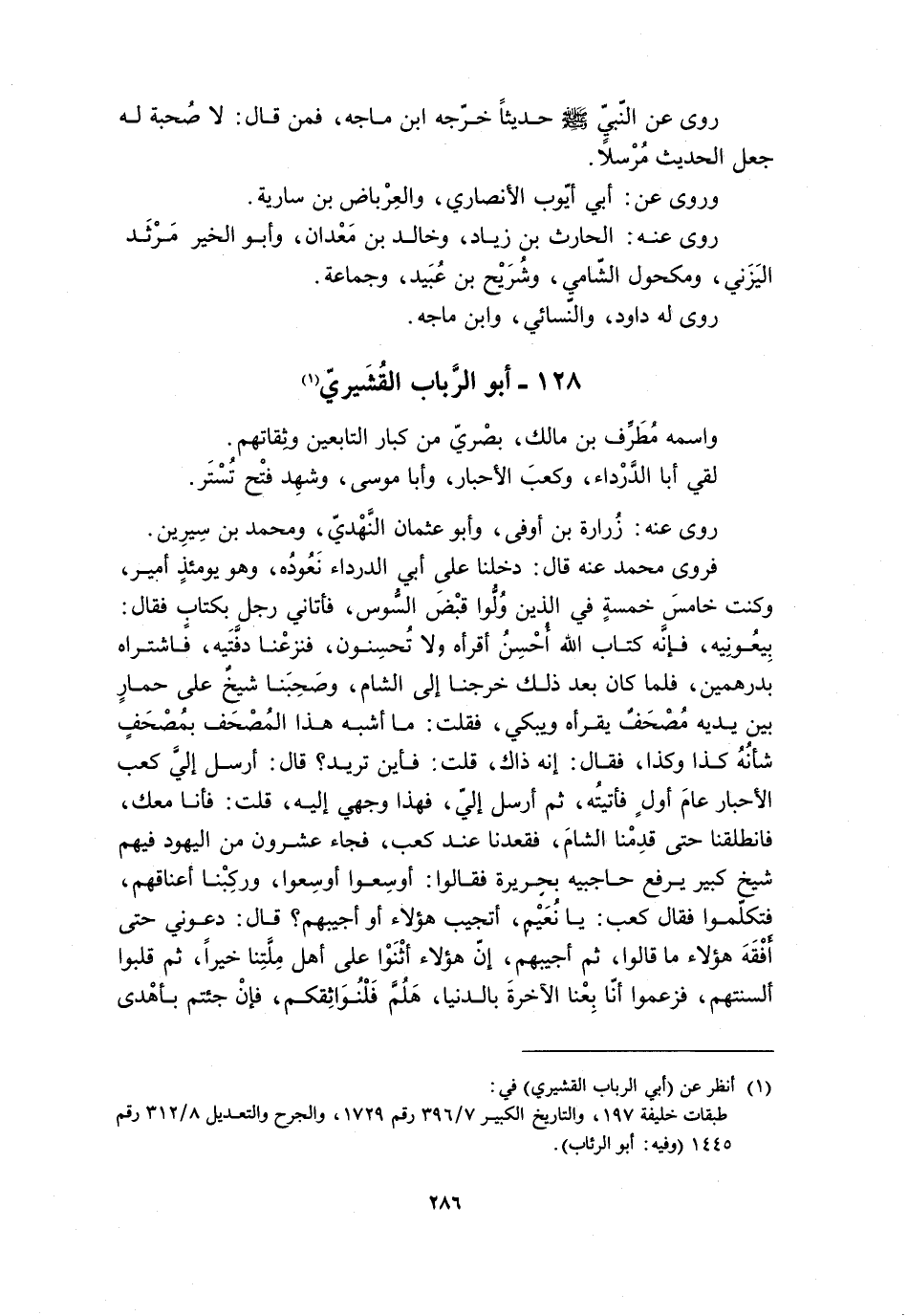 128- أَبُو الرَّبَابِ الْقُشَيْرِيُّ [1] وَاسْمُهُ مُطَرِّفُ بْنُ مَالِكٍ، بَصْرِيٌّ مِنْ كِبَارِ التَّابِعِينَ وَثِقَاتِهِمْ.