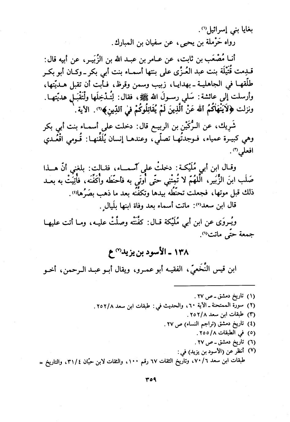 138- الأسود بن يزيد [7] ع ابْنُ قَيْسٍ النَّخَعِيُّ، الْفَقِيهُ أَبُو عَمْرٍو، وَيُقَالُ أبو عبد الرحمن، أخو