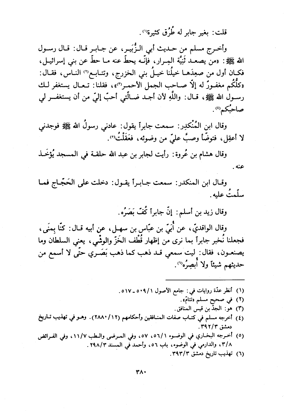 [5] أخرجه البخاري في الوضوء 1/ 56، 57، وفي المرضى والطب 7/ 11، وفي الفرائض 8/ 3، والدارميّ في الوضوء، باب 56، وأحمد في المسند 3/ 298.