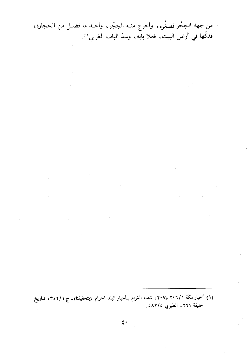 [1] أخبار مكة 1/ 206 و 207، شفاء الغرام بأخبار البلد الحرام (بتحقيقنا) - ج 1/ 342، تاريخ خليفة 261، الطبري 5/ 582.