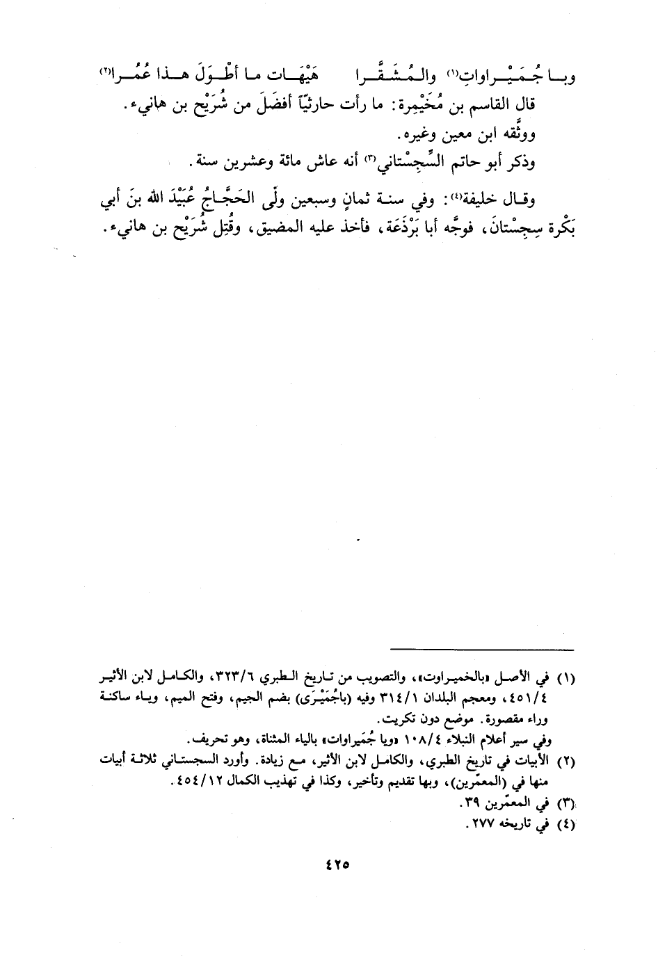 [1] في الأصل «بالخميراوت» ، والتصويب من تاريخ الطبري 6/ 323، والكامل لابن الأثير 4/ 451، ومعجم البلدان 1/ 314 وفيه (باجميرى) بضم الجيم، وفتح الميم، وياء ساكنة وراء مقصورة. موضع دون تكريت.