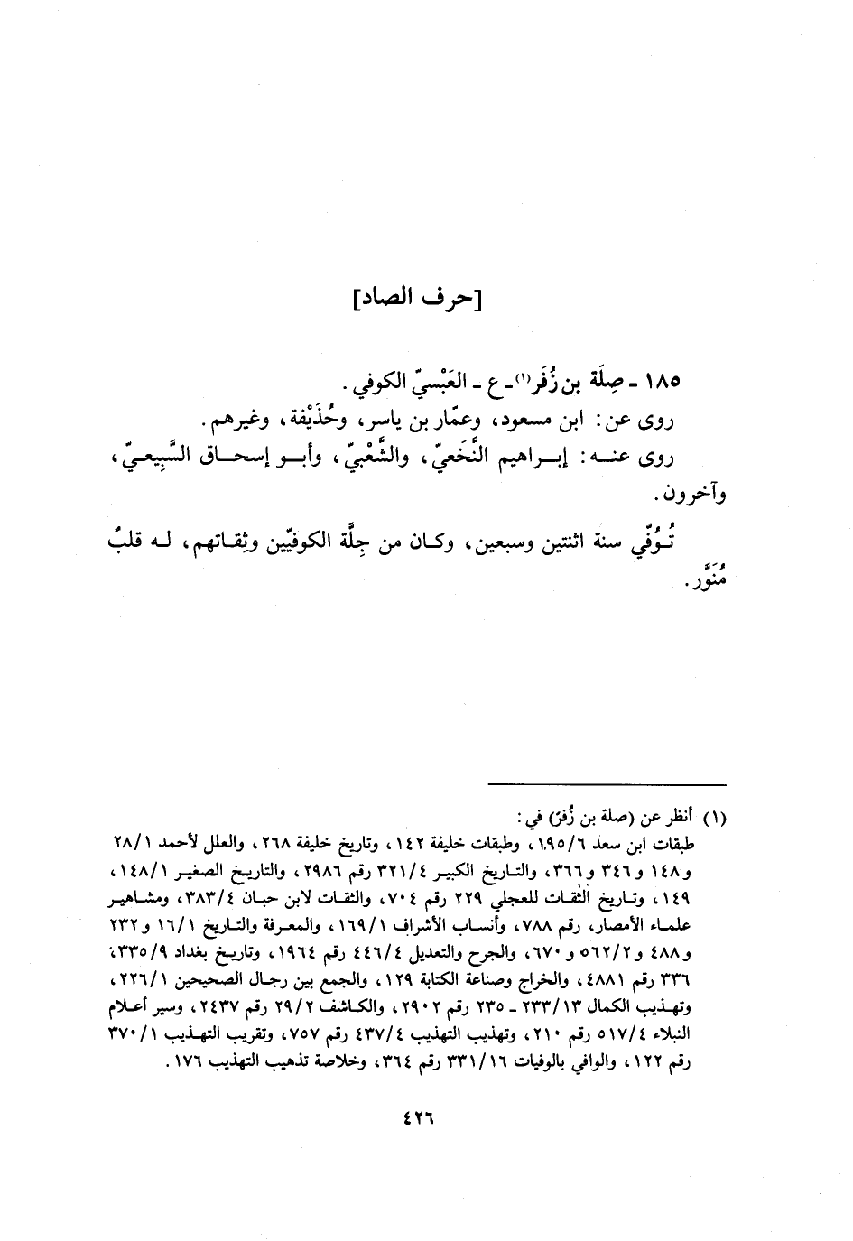 185- صلة بن زفر [1]- ع- العبسيّ الكوفي.