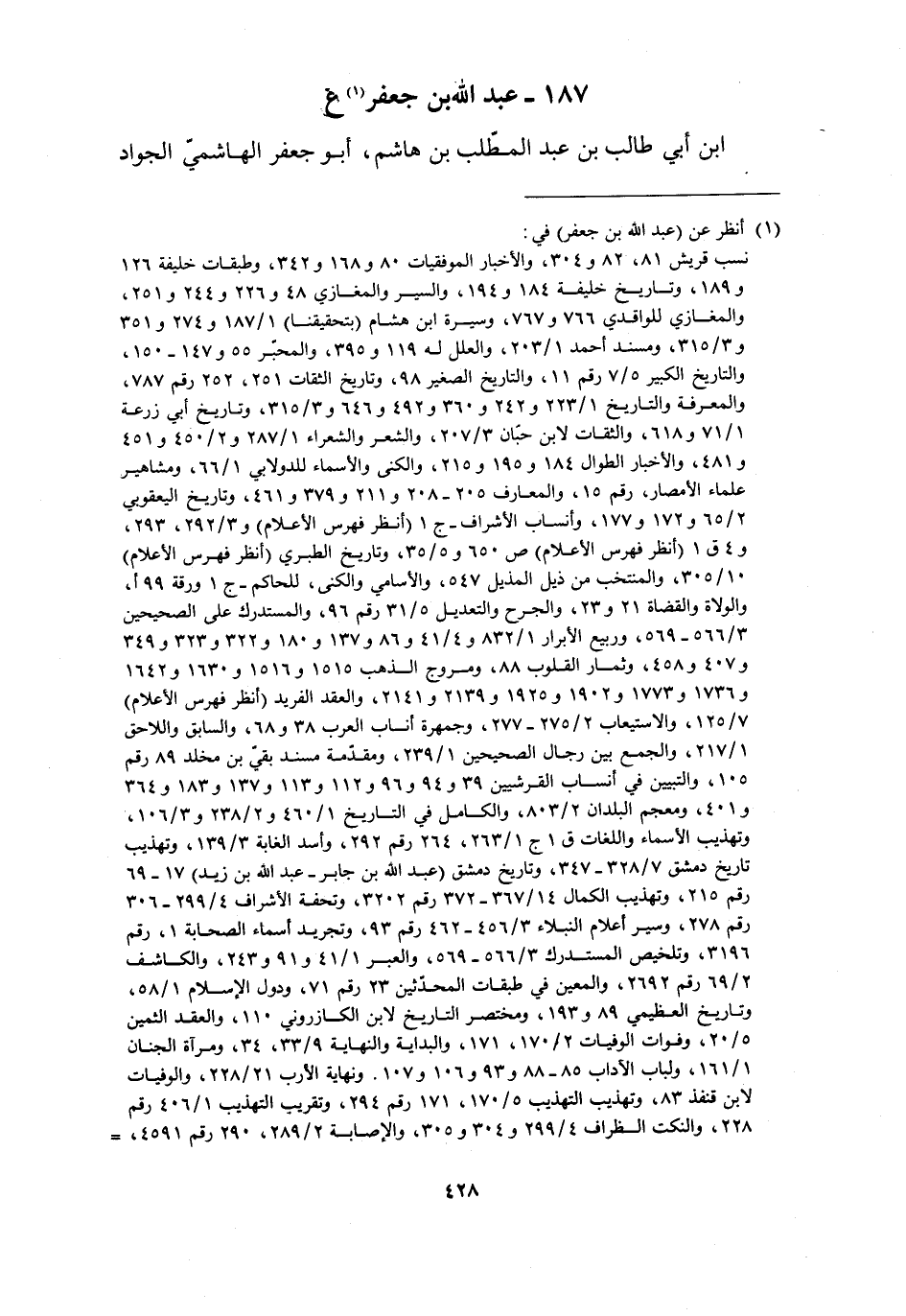187- عبد الله بن جعفر [1] ع ابْنِ أَبِي طَالِبِ بْنِ عَبْدِ الْمُطَّلِبِ بْنِ هاشم، أبو جعفر الهاشميّ الجواد