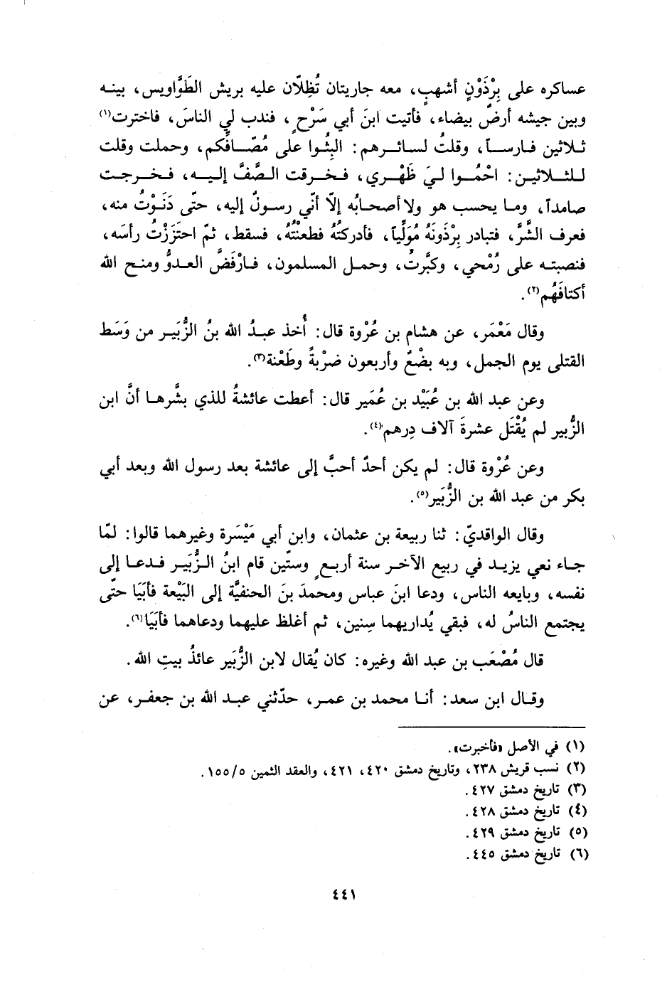 [2] نسب قريش 238، وتاريخ دمشق 420، 421، والعقد الثمين 5/ 155.