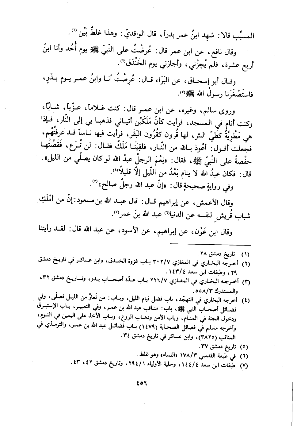 [4] أخرجه البخاري في التهجّد، باب فضل قيام الليل، وباب: من تعارّ من الليل فصلّى، وفي فضائل أصحاب النبي صلّى الله عليه وسلّم، باب: مناقب عبد الله بن عمر، وفي التعبير، باب الإستبرق ودخول الجنة في المنام، وباب الأمن وذهاب الروع، وباب الأخذ على اليمين في النوم، وأخرجه مسلم في فضائل الصحابة (1479) باب فضائل عبد الله بن عمر، والترمذي في المناقب (3825) ، وابن عساكر في تاريخ دمشق 34.