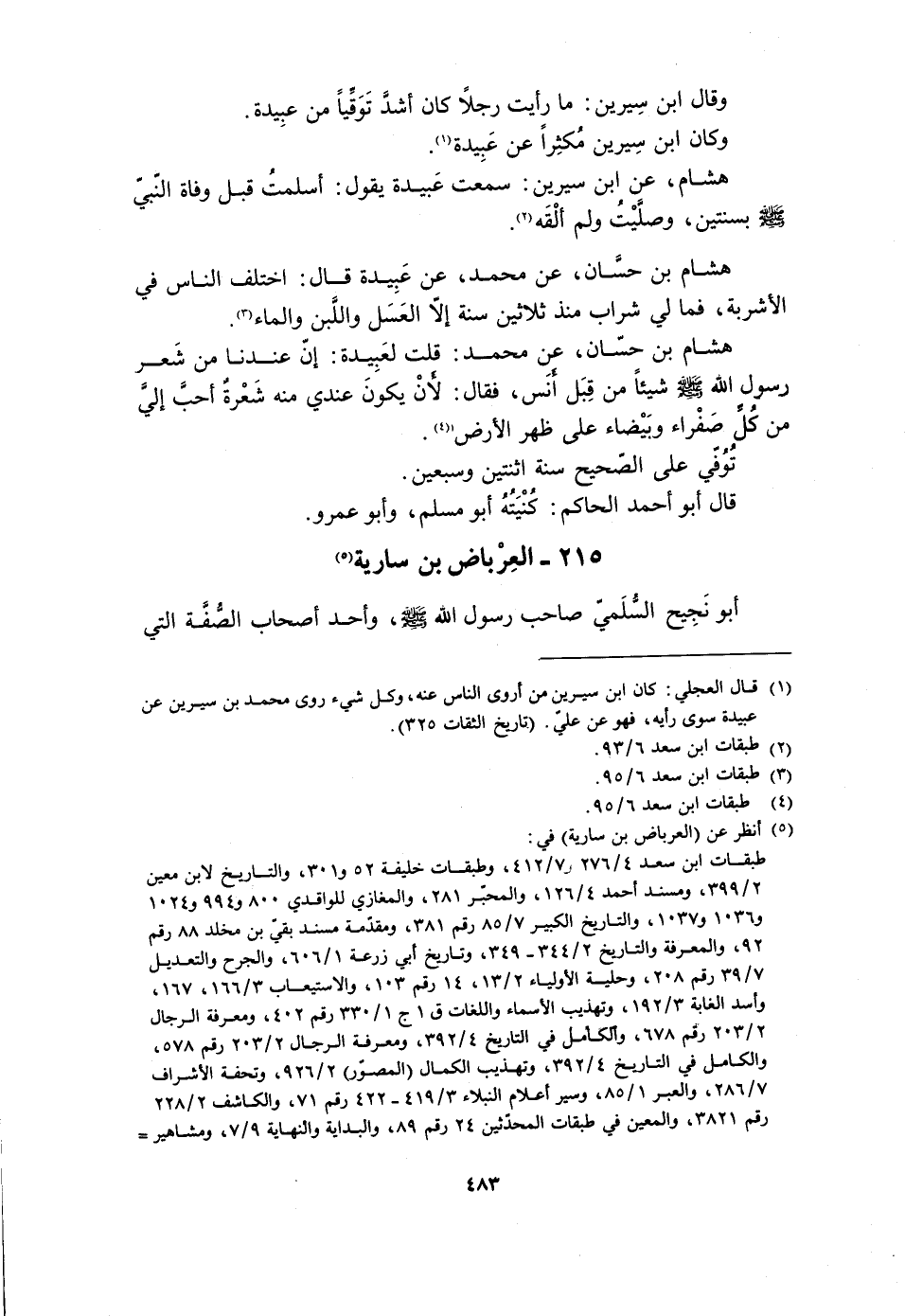 215- الْعِرْبَاضُ بْنُ سَارِيَةَ [5] أَبُو نَجِيحٍ السُّلَمِيُّ صَاحِبُ رَسُولِ اللَّهِ صَلَّى اللَّهُ عَلَيْهِ وَسَلَّمَ، وَأَحَدُ أَصْحَابِ الصُّفَّةِ الَّتِي