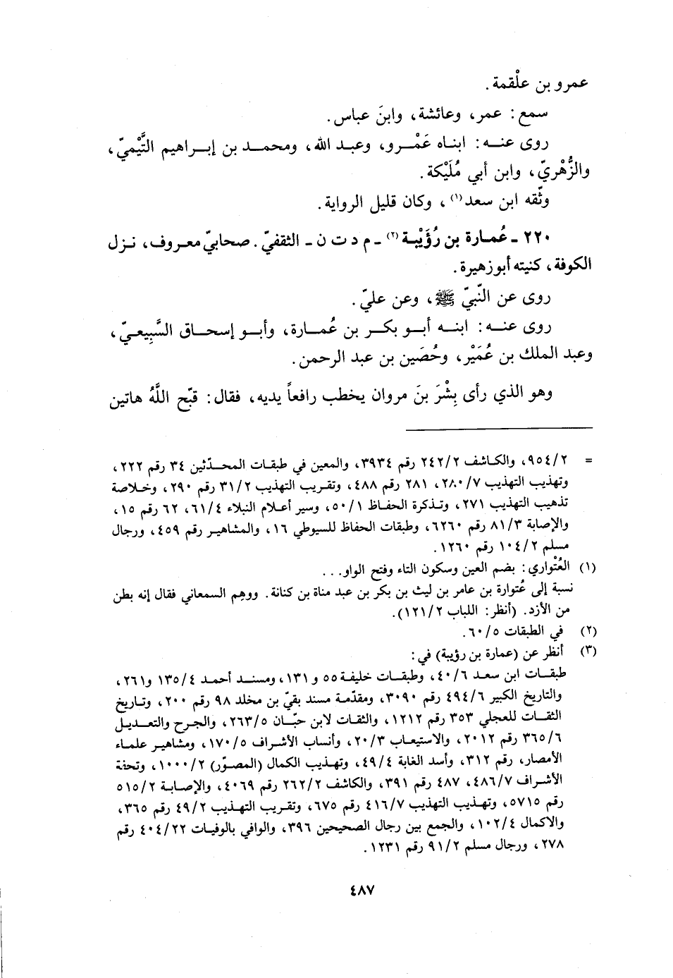 220- عمارة بن رويبة [7]- م د ت ن- الثقفيّ. صَحَابِيٌّ مَعْرُوفٌ، نَزَلَ الْكُوفَةَ، كُنْيَتُهُ أَبُو زُهَيْرَةَ.