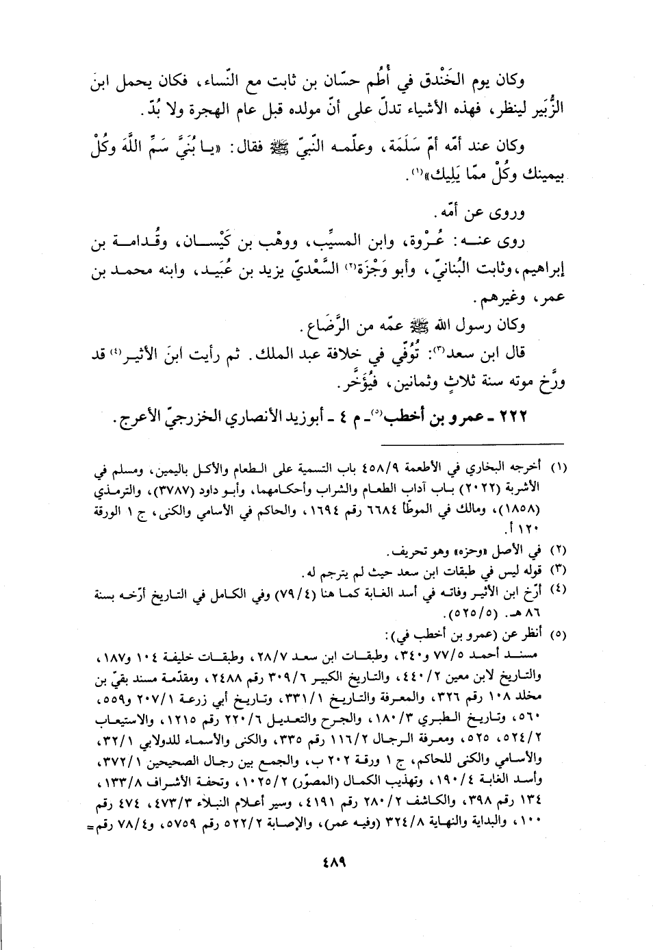[4] أرّخ ابن الأثير وفاته في أسد الغابة كما هنا (4/ 79) وفي الكامل في التاريخ أرّخه بسنة 86 هـ. (5/ 525) .