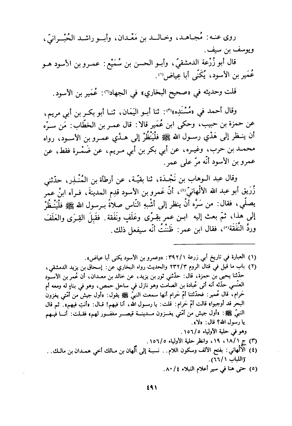 وَقَالَ عَبْدُ الْوَهَّابِ بْنُ نَجْدَةَ، ثنا بَقِيَّةُ، عَنْ أَرْطَأَةَ بْنِ الْمُنْذِرِ، حَدَّثَنِي زُرَيْقٌ أَبُو عَبْدِ اللَّهِ الألهاني [4] ، أن عمرو بن الأسود قدم المدينة، فرآه ابن عمر يصلي، فقال: من سره أن ينظر إلى أشبه الناس صَلاةً بِرَسُولِ اللَّهِ صلَّى اللَّهُ عَلَيْهِ وَسَلَّمَ فلينظر إلى هَذَا، ثُمَّ بَعَثَ إِلَيْهِ ابْنُ عُمَرَ بِقِرًى وَعَلَفٍ وَنَفَقَةٍ. فَقَبِلَ الْقِرَى وَالْعَلَفَ وَرَدَّ النَّفَقَةَ [5] ، فَقَالَ ابْنُ عُمَرَ: ظَنَنْتُ أَنَّهُ سَيَفْعَلُ ذَلِكَ.