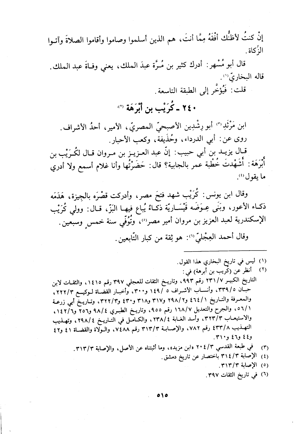 240- كُرَيْبُ بن أبرهة [2] ابن مَرْثَدٍ [3] أَبُو رِشْدِينَ الأَصْبَحِيُّ الْمِصْرِيُّ، الأَمِيرُ، أَحَدُ الأَشْرَافِ.