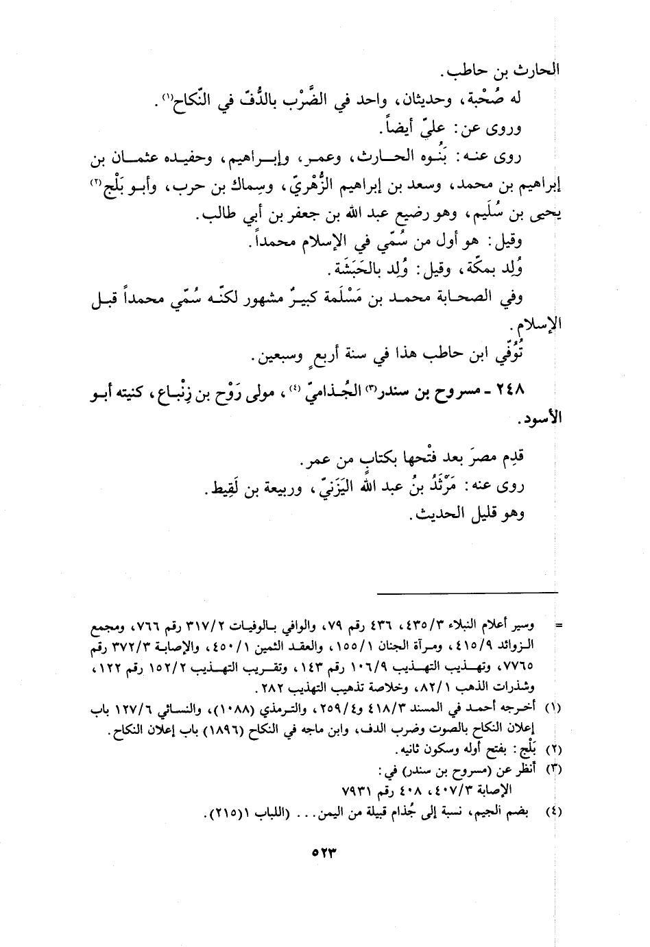 248- مَسْرُوحُ بْنُ سَنْدَرٍ [3] الْجُذَامِيُّ [4] ، مَوْلَى رَوْحِ بْنِ زِنْبَاعٍ، كُنْيَتَهُ أَبُو الأَسْوَدِ.