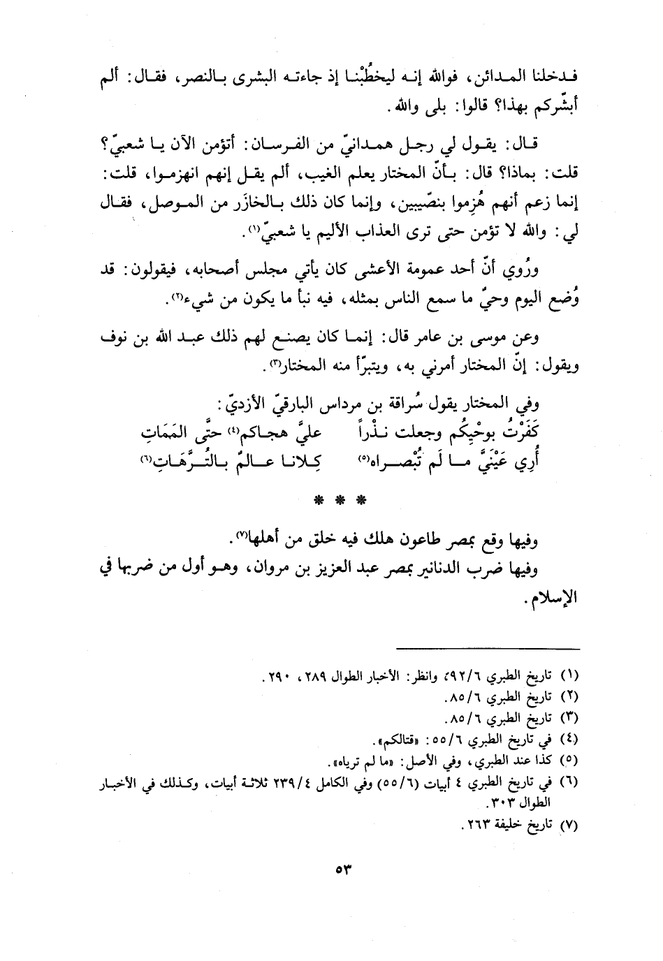 [6] في تاريخ الطبري 4 أبيات (6/ 55) وفي الكامل 4/ 239 ثلاثة أبيات، وكذلك في الأخبار الطوال 303.