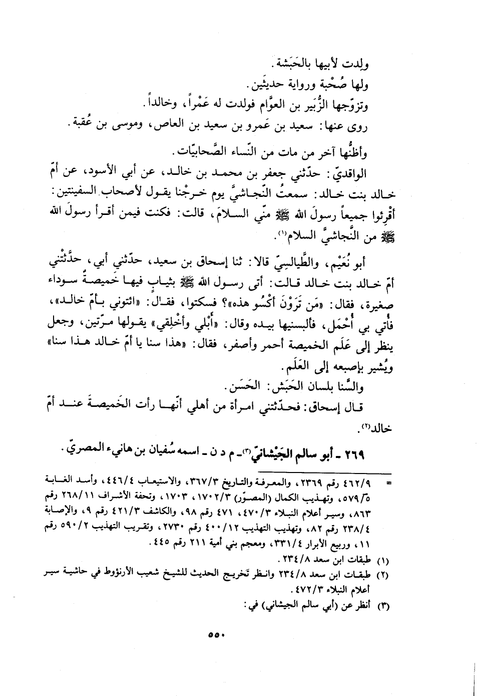 [2] طبقات ابن سعد 8/ 234 وانظر تخريج الحديث للشيخ شعيب الأرنئوط في حاشية سير أعلام النبلاء 3/ 472.