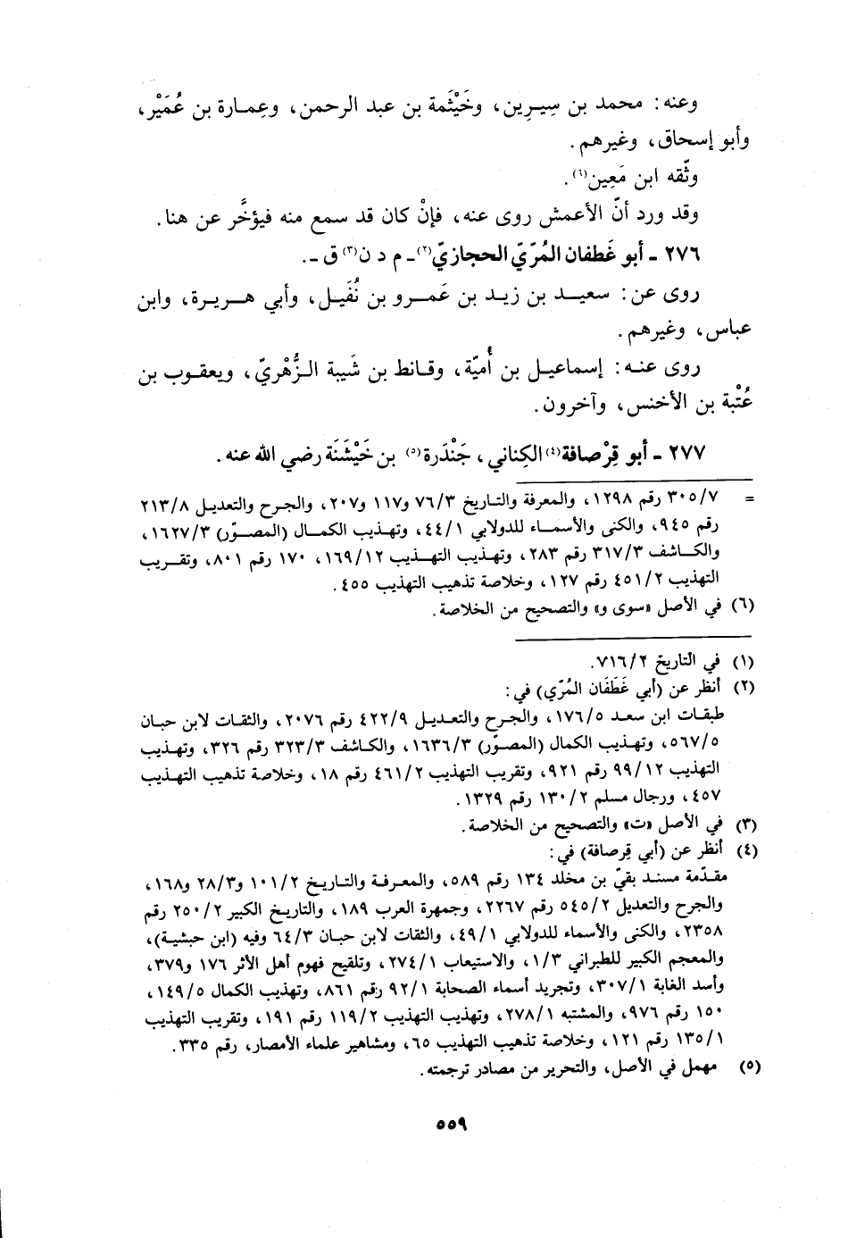 [ () ] 7/ 305 رقم 1298، والمعرفة والتاريخ 3/ 76 و 117 و 207، والجرح والتعديل 8/ 213 رقم 945، والكنى والأسماء للدولابي 1/ 44، وتهذيب الكمال (المصوّر) 3/ 1627، والكاشف 3/ 317 رقم 283، وتهذيب التهذيب 12/ 169، 170 رقم 801، وتقريب التهذيب 2/ 451 رقم 127، وخلاصة تذهيب التهذيب 455.