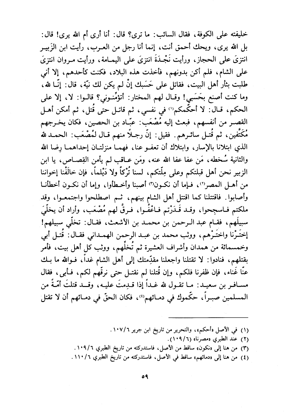 [4] من هنا إلى «دمائهم» ساقط في الأصل، فاستدركته من تاريخ الطبري 6/ 110.