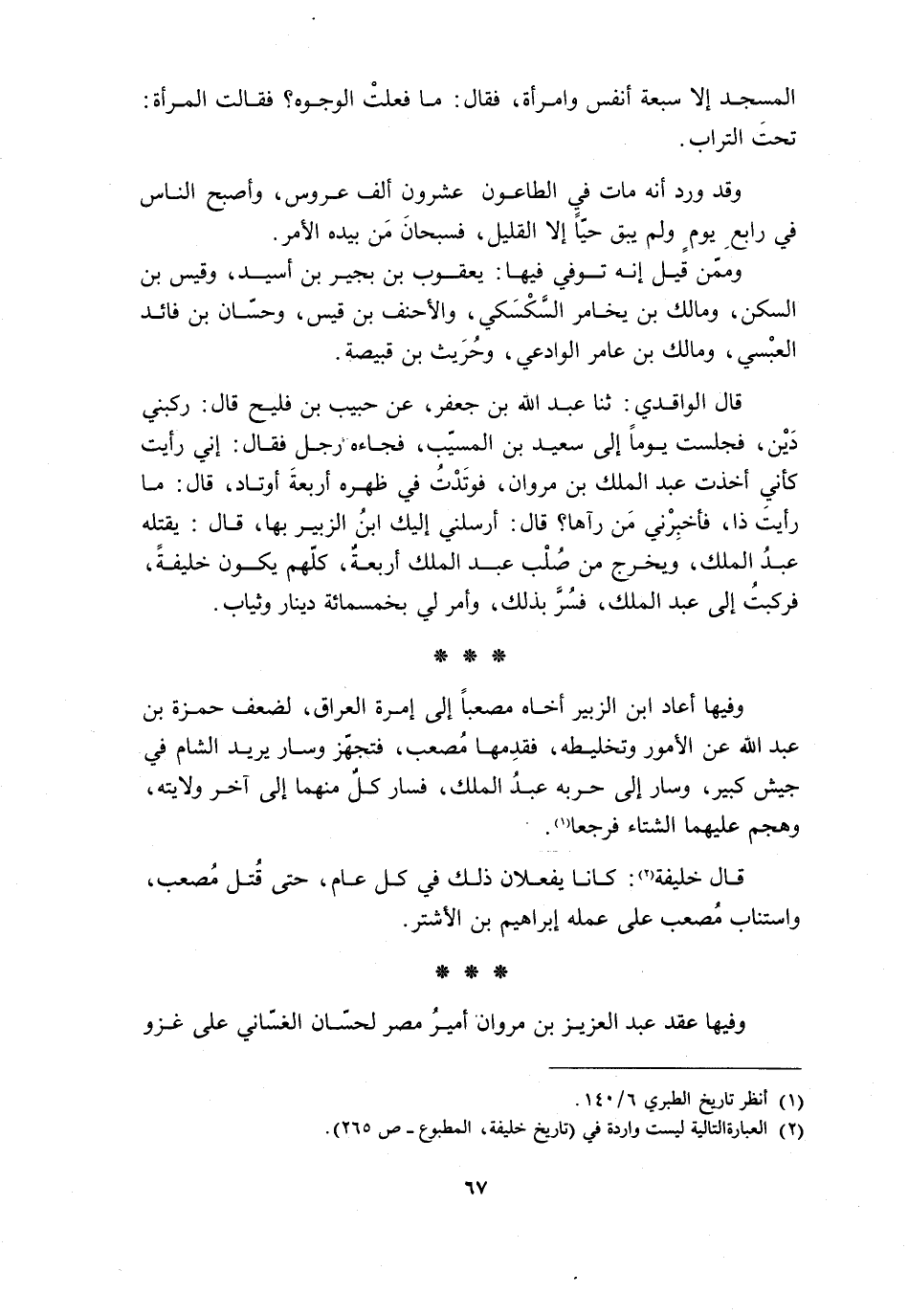 [2] العبارة التالية ليست واردة في (تاريخ خليفة، المطبوع- ص 265) .