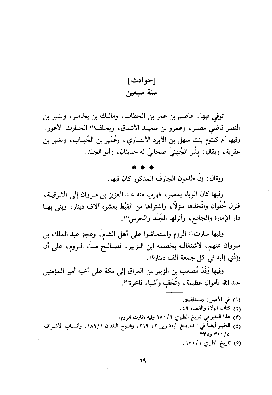 [حَوَادِثُ] سَنَةِ سَبْعِينَ