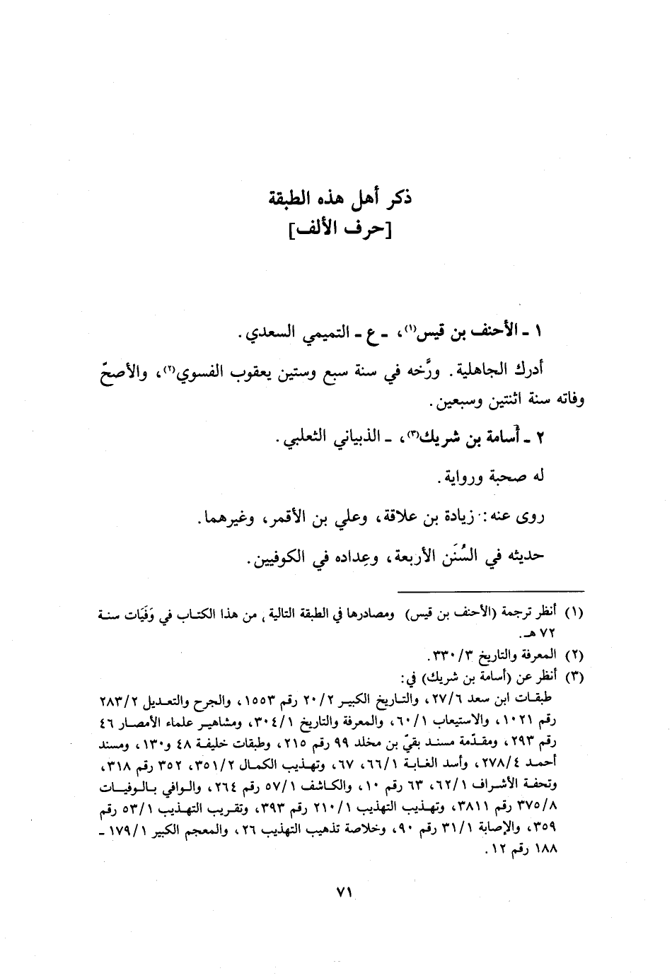 [1] انظر ترجمة (الأحنف بن قيس) ومصادرها في الطبقة التالية، من هذا الكتاب في وفيات سنة 72 هـ.