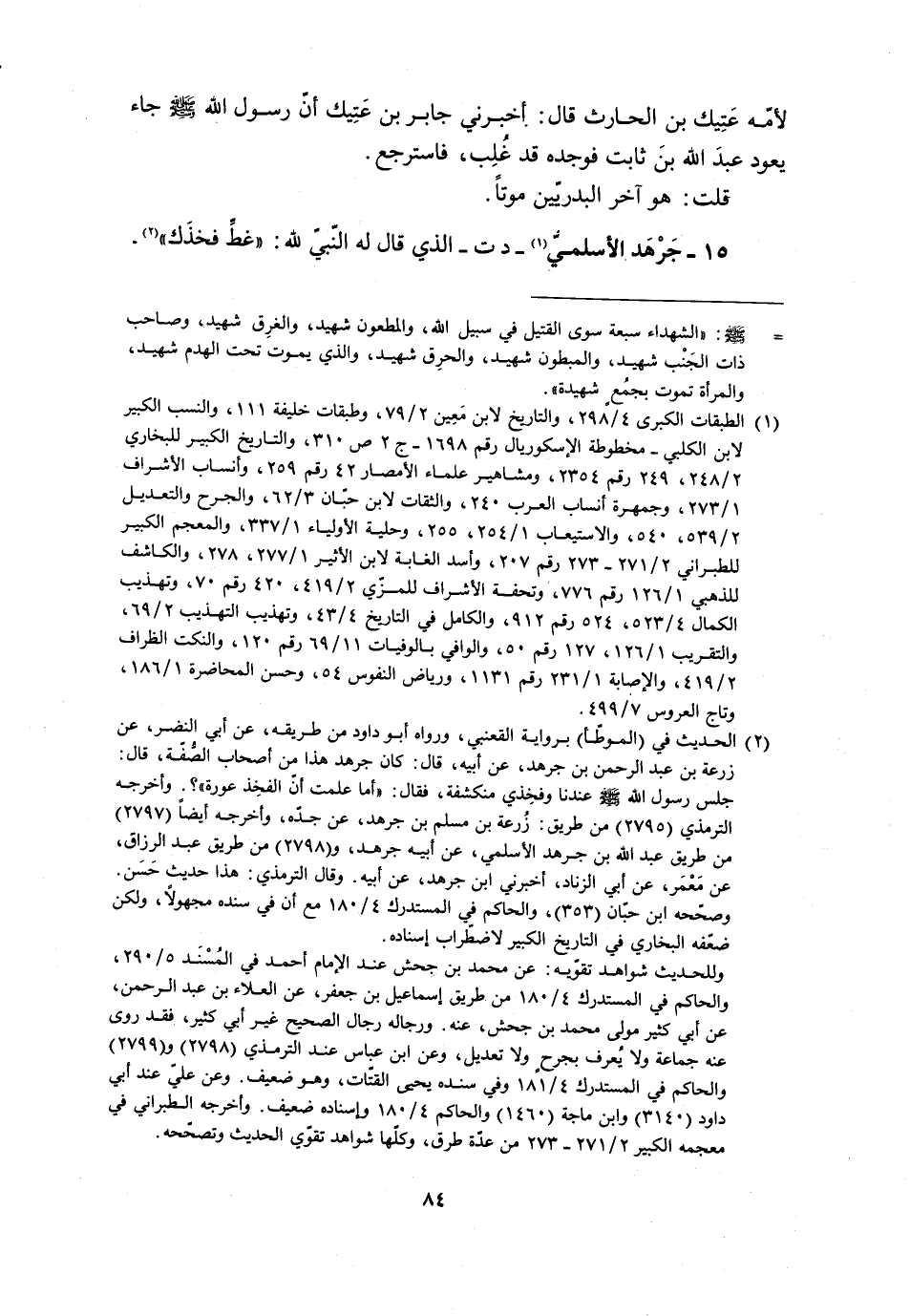15- جَرْهَدُ الأَسْلَمِيُّ [1]- د ت- الَّذِي قَالَ لَهُ النَّبِيُّ للَّه: «غَطِّ فَخْذَكَ» [2] .