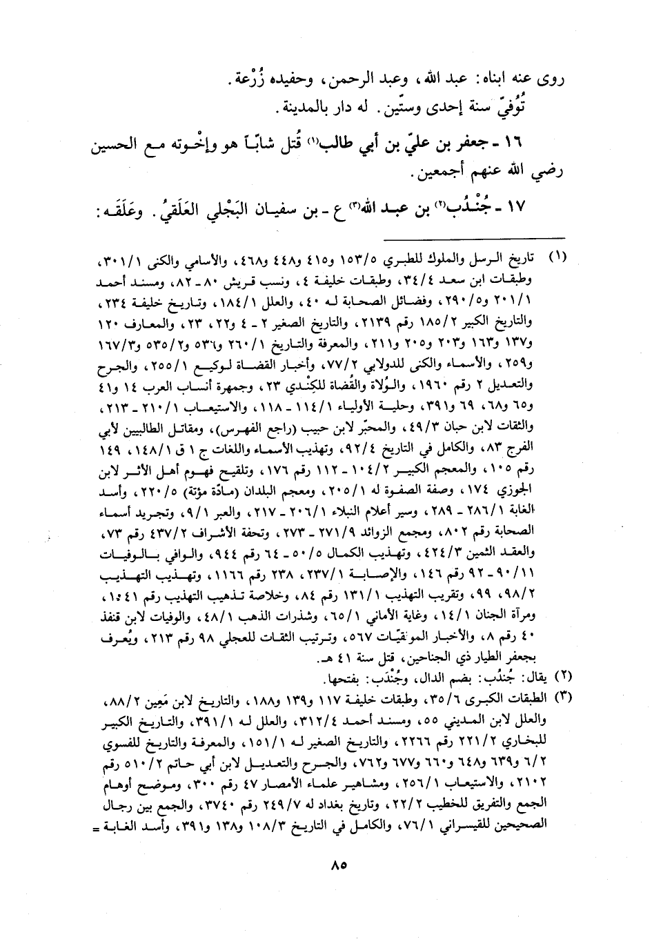 17- جندب [2] بن عبد الله [3] ع- بن سفيان البجلي العلقي. وعلقه:
