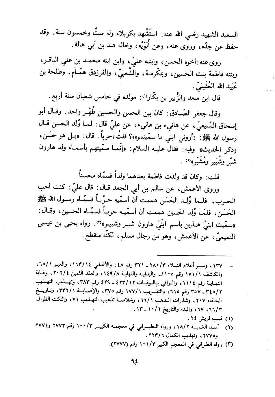 السَّعِيدُ الشَّهِيدُ رَضِيَ اللَّهُ عَنْهُ. اسْتُشْهِدَ بِكَرْبَلاءَ وَلَهُ سِتٌّ وَخَمْسُونَ سَنَةً. وَقَدْ حَفِظَ عَنْ جَدِّهِ، وَرَوَى عَنْهُ، وَعَنْ أَبَوَيْهِ، وَخَالِهِ هِنْدِ بْنِ أَبِي هَالَةَ.