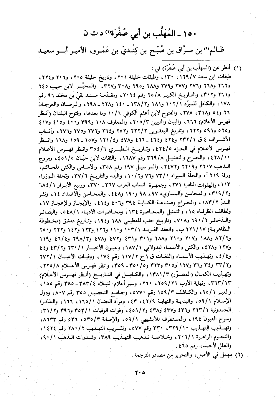 150- المهلّب بن أبي صفرة [1] د ت ن ظَالِمُ [2] بْنُ سُرَّاقِ بْنِ صُبْحِ بْنِ كِنْدِيِّ بن عمرو، الأمير أبو سعيد