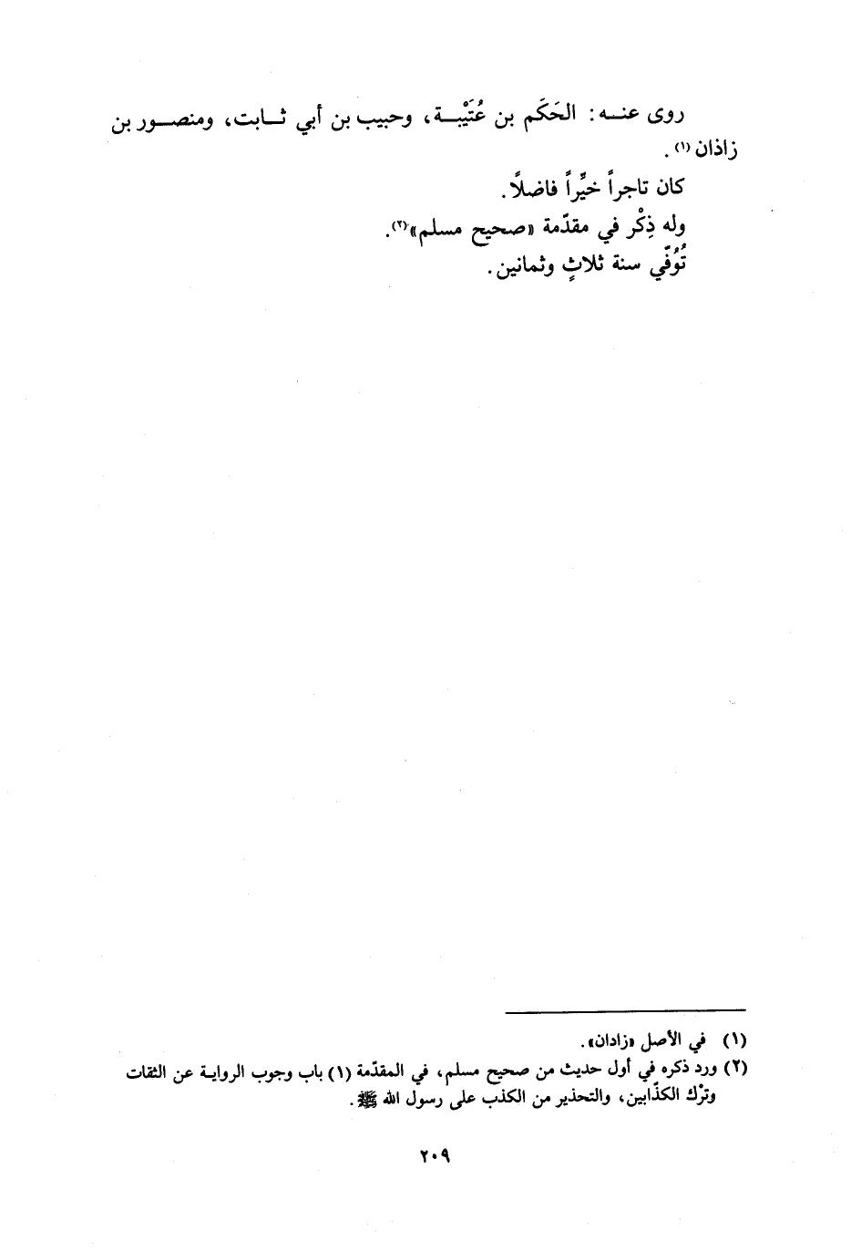 [2] ورد ذكره في أول حديث من صحيح مسلم، في المقدّمة (1) باب وجوب الرواية عن الثقات وترك الكذّابين، والتحذير من الكذب عَلَى رَسُولِ اللَّهِ صَلَّى اللَّهُ عَلَيْهِ وَسَلَّمَ.