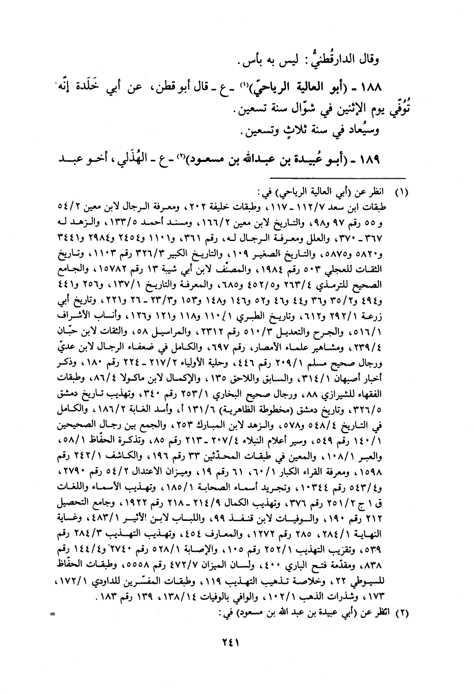 188- (أَبُو الْعَالِيَةِ الرِّيَاحِيُّ) [1]- ع- قَالَ أَبُو قَطَنٍ، عَنْ أَبِي خَلَدَةَ إِنَّهُ تُوُفِّيَ يَوْمَ الاثْنَيْنِ فِي شَوَّالٍ سَنَةَ تِسْعِينَ.
