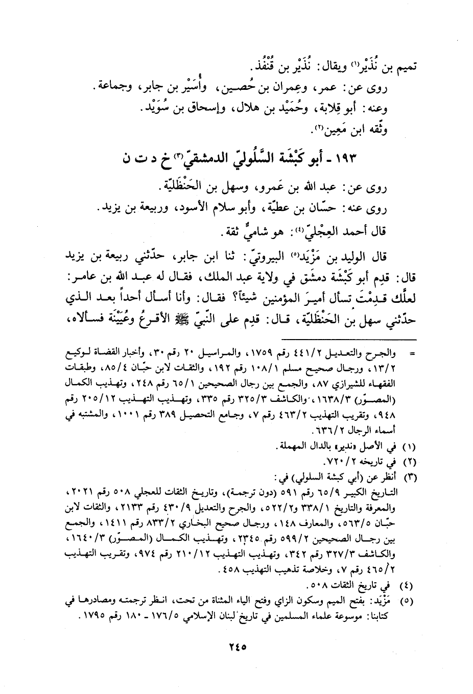 193- أَبُو كَبْشَةَ السَّلُولِيُّ الدِّمَشْقِيُّ [3] خ د ت ن رَوَى عَنْ: عَبْدِ اللَّهِ بْنِ عَمْرٍو، وَسَهْلِ بْنِ الْحَنْظَلِيَّةِ.