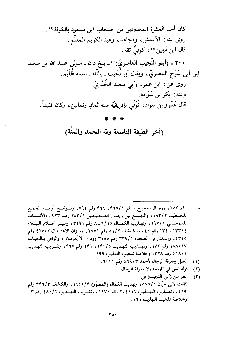 (آخر الطبقة التاسعة وللَّه الحمد والمنّة)