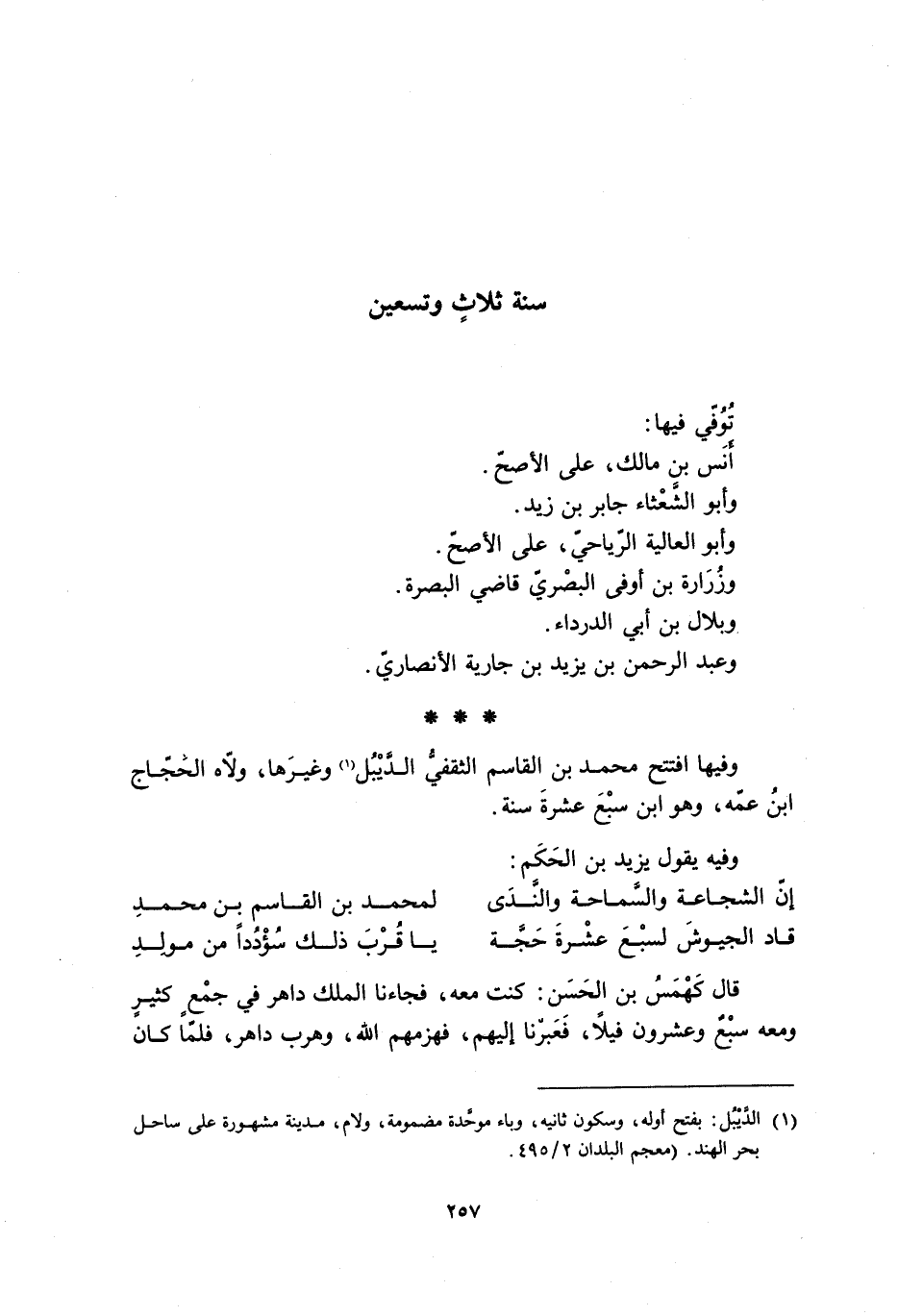 [1] الدّيبل: بفتح أوله، وسكون ثانيه، وباء موحّدة مضمومة، ولام، مدينة مشهورة على ساحل بحر الهند. (معجم البلدان 2/ 495.