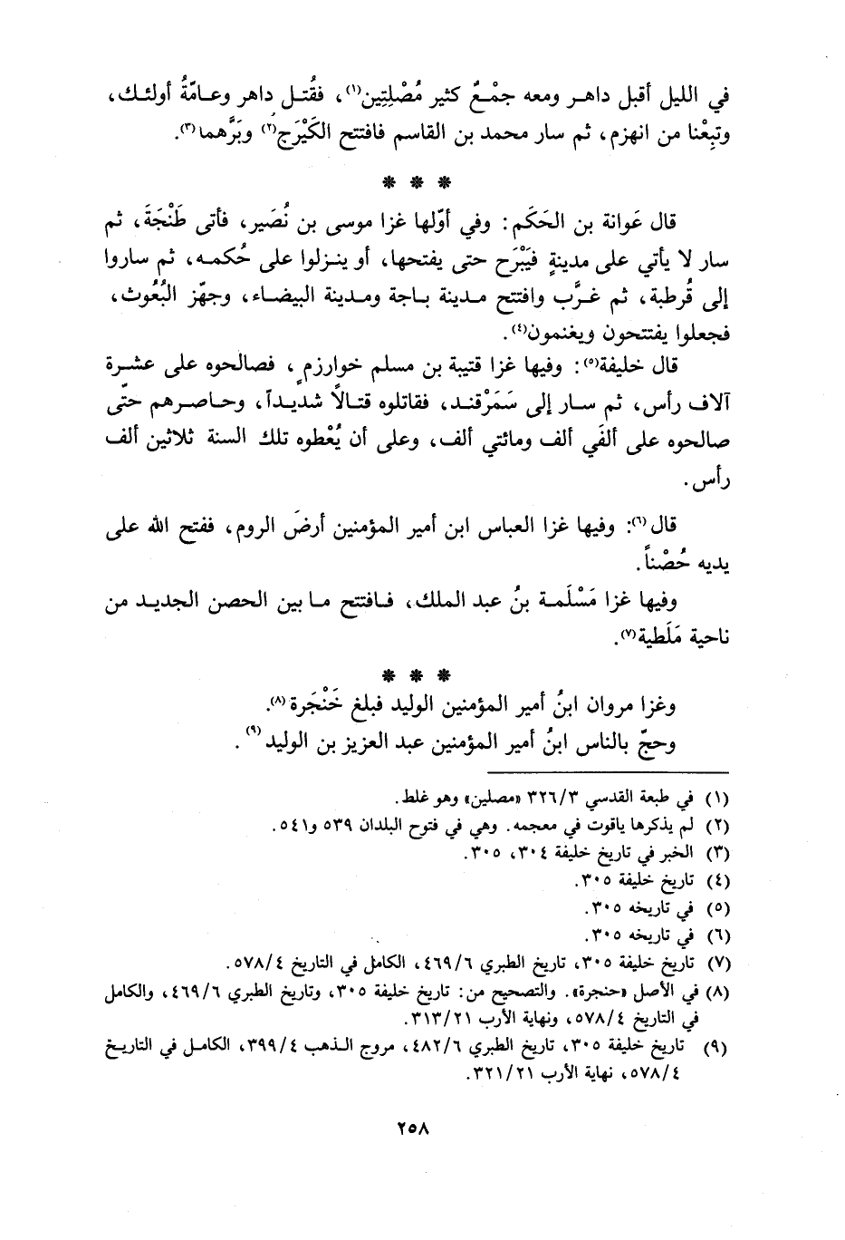[9] تاريخ خليفة 305، تاريخ الطبري 6/ 482، مروج الذهب 4/ 399، الكامل في التاريخ 4/ 578، نهاية الأرب 21/ 321.