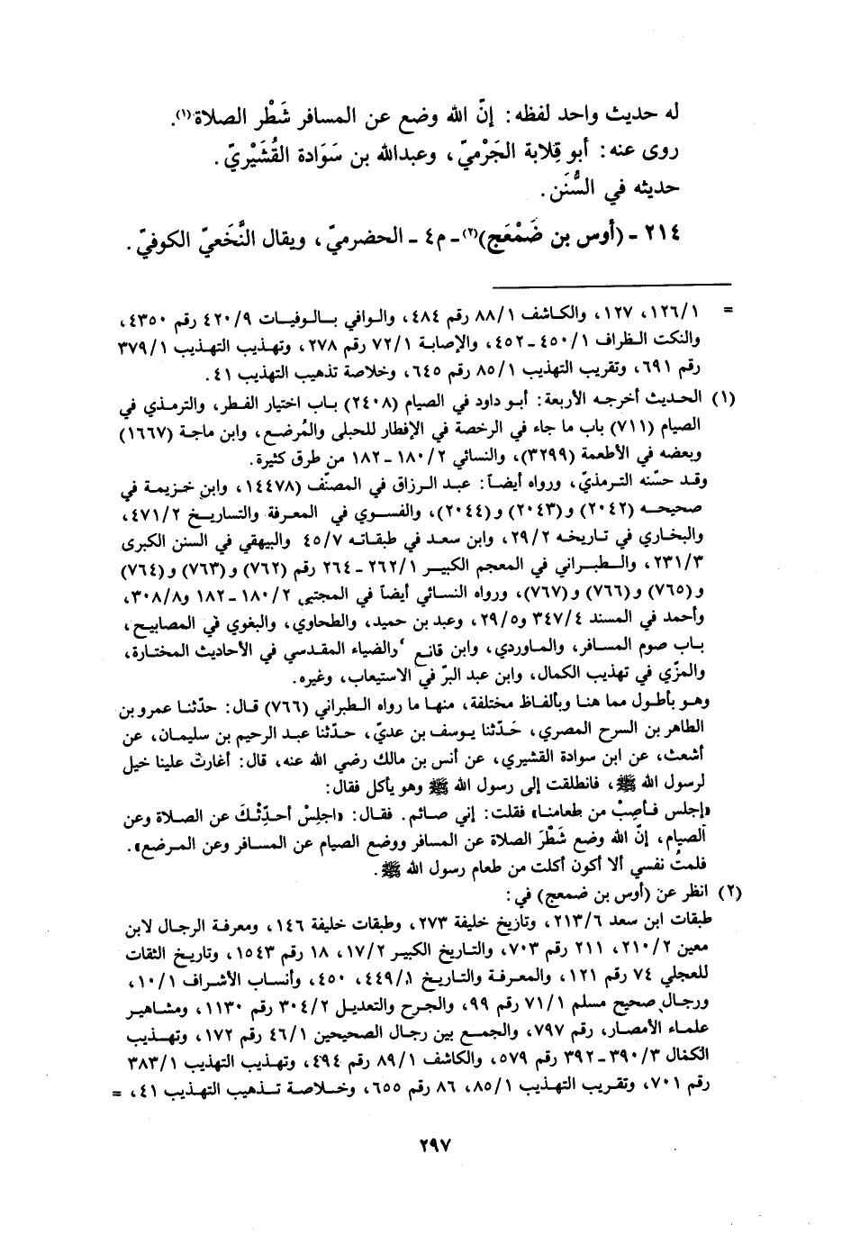 [1] / 126، 127، والكاشف 1/ 88 رقم 484، والوافي بالوفيات 9/ 420 رقم 4350، والنكت الظراف 1/ 450- 452، والإصابة 1/ 72 رقم 278، وتهذيب التهذيب 1/ 379 رقم 691، وتقريب التهذيب 1/ 85 رقم 645، وخلاصة تذهيب التهذيب 41.