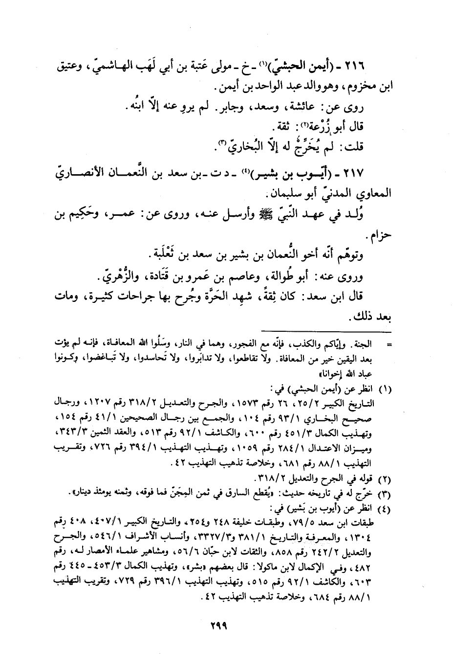216- (أَيْمَنُ الْحَبَشِيُّ) [1]- خ- مَوْلَى عُتْبَةَ بْنِ أَبِي لهب الهاشميّ، وعتيق ابن مَخْزُومٍ، وَهُوَ وَالِدُ عَبْدِ الْوَاحِدِ بْنِ أَيْمَنَ.