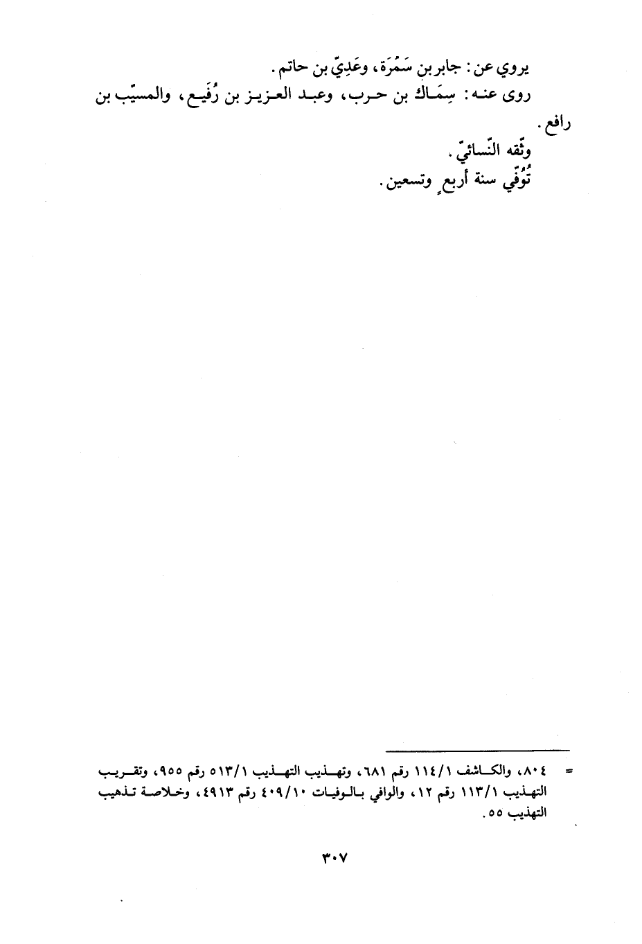 يَرْوِي عَنْ: جَابِرِ بْنِ سَمُرَةَ، وَعَدِيِّ بْنِ حَاتِمٍ.