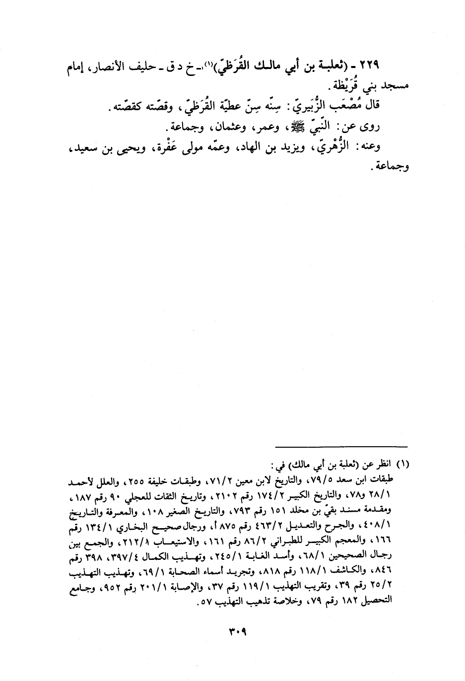229- (ثَعْلَبَةُ بْنُ أَبِي مَالِكٍ الْقُرَظِيُّ) [1]- خ د ق- حَلِيفُ الأَنْصَارِ، إِمَامُ مَسْجِدِ بَنِي قُرَيْظَةَ.