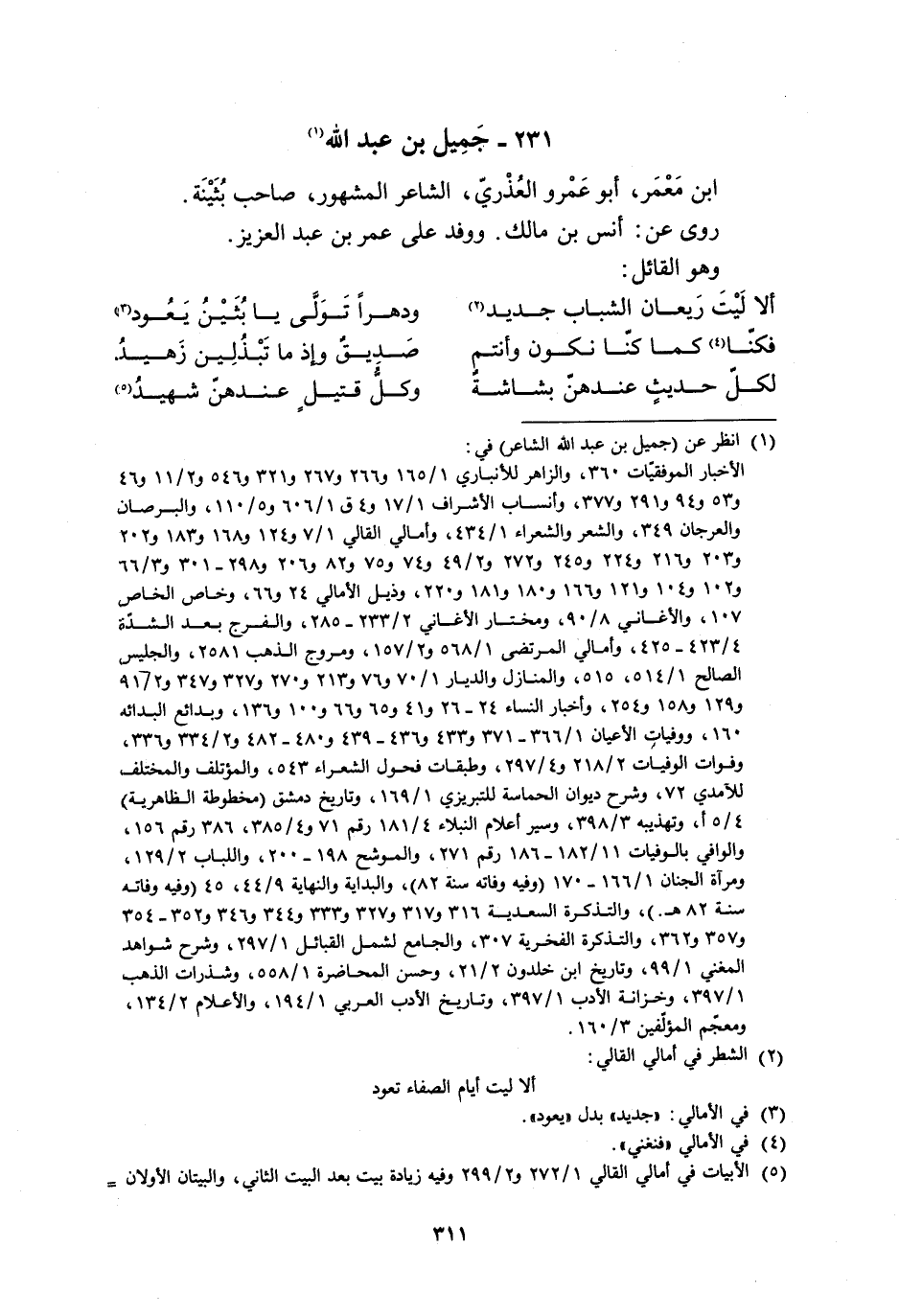 231- جميل بن عبد الله [1] ابن معمر، أبو عمرو العذري، الشاعر المشهور، صَاحِبُ بُثَيْنَةَ.