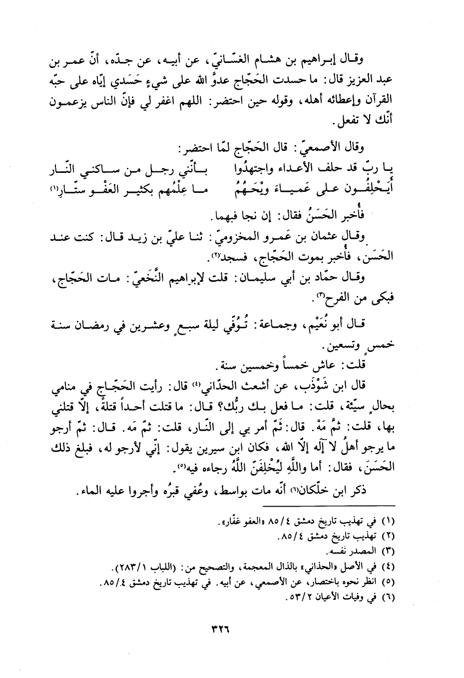 وَقَالَ حَمَّادُ بْنُ أَبِي سُلَيْمَانَ: قُلْتُ لِإِبْرَاهِيمَ النَّخَعِيُّ: مَاتَ الْحَجَّاجُ، فَبَكَى مِنَ الْفَرَحِ [3] .