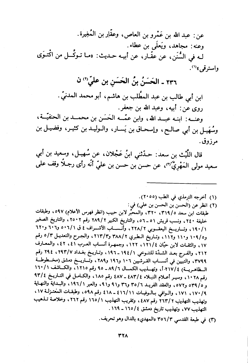 لَهُ فِي السُّنَنِ، عَنْ عَقَّارٍ، عَنْ أَبِيهِ حَدِيثٌ: «مَا تَوَكَّلَ مَنِ اكْتَوَى وَاسْتَرْقَى» [1] . 236- الحسن بن الحسن بن عليّ [2] ن ابْنِ أَبِي طَالِبِ بْنِ عَبْدِ الْمُطَّلِبِ بْنِ هاشم، أبو محمد المدنيّ.