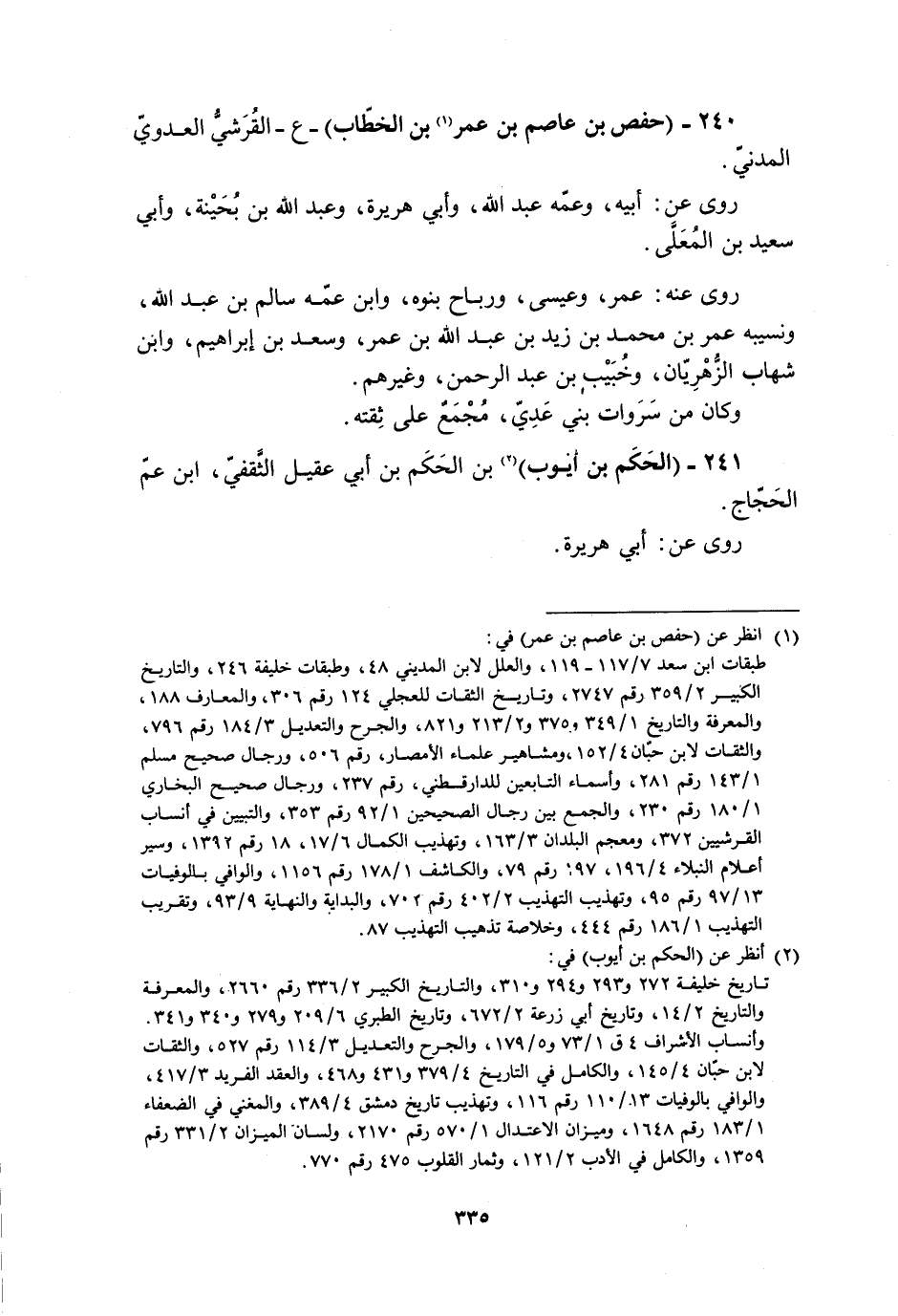 240- (حَفْصُ بْنُ عَاصِمِ بْنِ عُمَرَ [1] بْنِ الْخَطَّابِ) - ع- القرشيّ العدويّ المدنيّ.