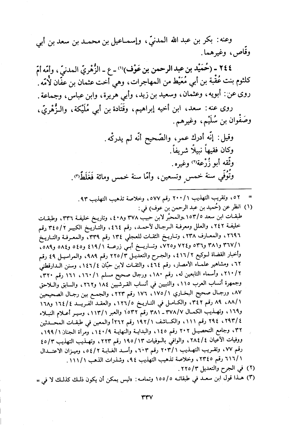 244- (حُمَيْدُ بْنُ عَبْدِ الرَّحْمَنِ بْنِ عَوْفٍ) [1]- ع- الزّهريّ المدنيّ، وَأُمُّهُ أُمُّ كُلْثُومَ بِنْت عُقْبة بْن أَبِي مُعَيْط مِنَ الْمُهَاجِرَاتِ، وَهِيَ أُخْتُ عُثْمَانَ بْنِ عَفَّانَ لأُمِّهِ.