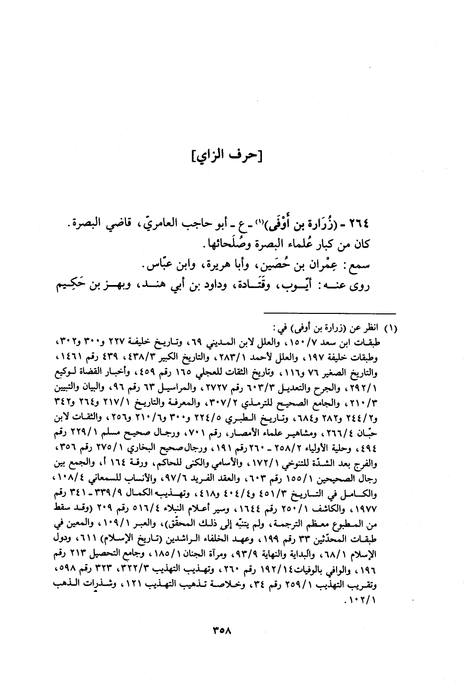 264- (زرارة بن أوفى) [1]- ع- أبو حاجب العامريّ، قَاضِي الْبَصْرَةِ.